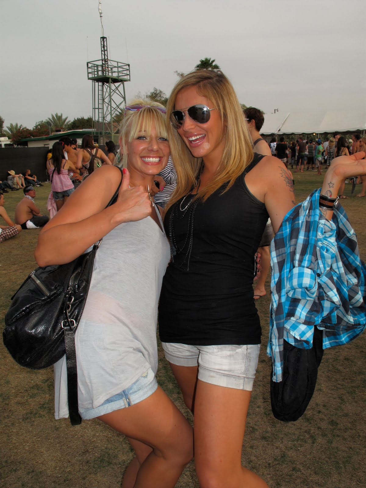 Could barely talk for the last hour in the car, had to pee so bad, almost got mas at Emilia and Jeremy when the expected me to talk to them ha ha, so after running to the potties we were finally able to open the trunk and enjoy our cold coronas, we got to enjoy one before the security guards came by and asked us to pour it in to plastic bottles ..which made it feel more like I was drinking pee, we were gonna draw up plan for how to get in and I think we all thought it was gonna take a couple of hours, but as soon as we had locked the car and started walking towards the entrance, these guys came up and started talking to us and when they heard we didn't have any tickets they offered to lend us there wrist bands and get us in..